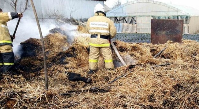 Фото пресс-службы Министерства чрезвычайных ситуаций Республики Крым На территории частного домовладения загорелась скирда соломы. К месту происшествия немедленно выехала дежурная смена пожарной части, сообщает пресс-служба ведомства. Существовала угроза быстрого распространения огня на соседние деревянные строения. По прибытии огнеборцы выяснили, что на территории частного домовладения горит скирда тюкованной соломы. Существует угроза быстрого распространения огня на соседние деревянные строения, отметил министр чрезвычайных ситуаций Республики Крым Сергей Шахов Благодаря оперативной работе крымских огнеборцев удалось избежать дальнейшего распространения огня, - добавил министр. Возгорания сена, соломы – это серьезная проблема, с которой сталкиваются сельские жители. Заготовленные сельскохозяйственные корма в считанные минуты уничтожаются огнем, который может также перейти на находящиеся рядом жилые дома и хозпостройки.