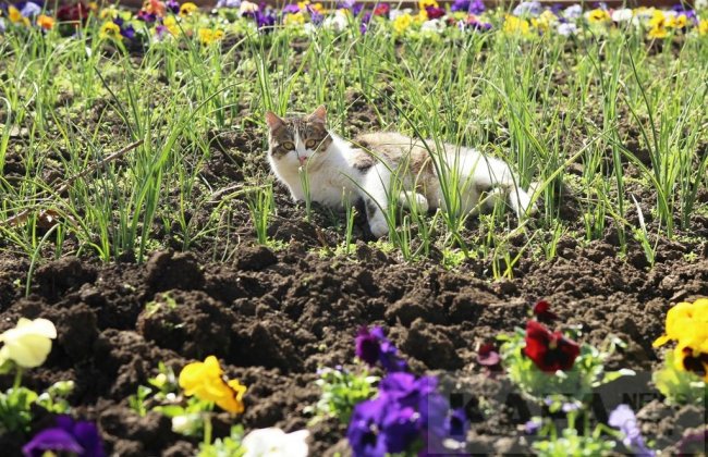 Цветет слива и хеномелес, на клумбе у памятника Пушкину улыбаются анютины глазки, жужжат пчелы, коты греются на теплом мартовском солнце. С весенним теплом беды и горести кажутся легче, в каждом сердце просыпается радость и надежда на лучшее.