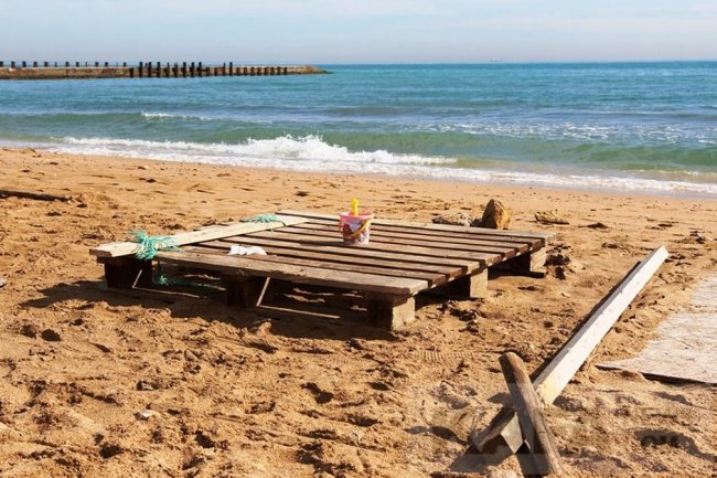 Сейчас на пляже хорошо себя чувствуют только местные выпивохи и чайки, важно прогуливающиеся по песку.