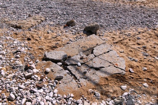 Вход на пляж уже много лет начинает с очень неудобной арки под железной дорогой, где высоким людям приходится нагибать голову, чтобы не ушибиться. Сразу за аркой располагается общественный туалет. Его закрывают на зимний сезон, но соответствующий запах сохраняется круглый год. Ровно напротив туалета в море уходит металлическая труба, вызывая нехорошие подозрения в ее назначении, вода рядом с трубой грязная и зацветшая.