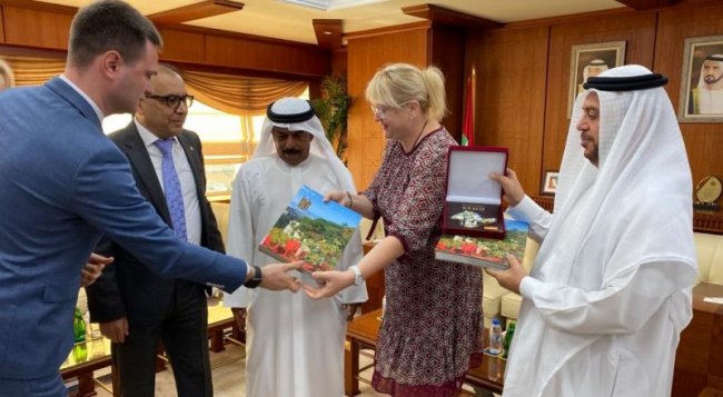 Фотои пресс-службы Министерства финансов РК В ходе бизнес-миссии обсуждались вопросы выхода с экспортом крымской продукции на рынок Объединенных Арабских Эмиратов. Представители Республики Крым посетили Торгово- промышленную палату Аджмана ОАЭ. Встречал делегацию президент палаты Абдулла Аль Мувайджи. В рамках встречи совместно с другими представителями власти и бизнеса Аджмана обсуждались возможности и перспективы сотрудничества. «Аджман – это отправная точка в установлении прочных отношений со всеми Эмиратами. Для Крыма налаживание отношений с Торгово-промышленной палатой, в первую очередь, означает успешное закрепление позитивного образа республики и решительного настроя крымчан», – отметила заместитель Председателя Совета министров Республики Крым - министр финансов Республики Крым Ирина Кивико. Также участники делегации посетили Российское представительство Белгородского университета. В ходе мероприятия обсуждалась возможность открытия в Аджмане филиала Крымского федерального университете имени В.И. Вернадского, а также перспективы поддержки крымских университетов Эмиратами. «Развитие данного направления не только экономически выгодно для сферы крымского образования, но и значительно повышает престиж образовательных услуг полуострова», – прокомментировала Ирина Кивико. Завершился визит посещением свободной экономической зоны в Аджмане. «Вскоре крымские товары и услуги смогут быть полноценно представлены на динамичном и прогрессивном рынке ОАЭ», – подытожила по результатам проведенных встреч Ирина Кивико.