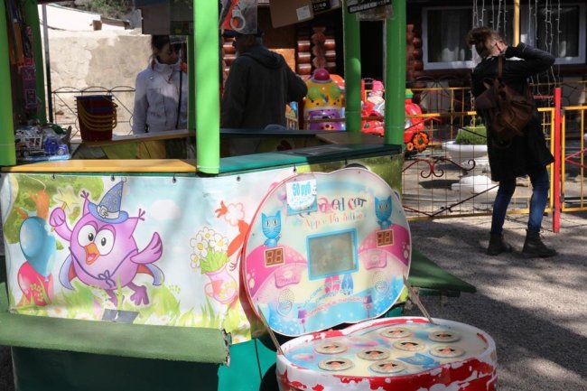 Кафе «Лукоморье» в сквере у памятника А.Пушкину много лет славилось своей бесплатной детской площадкой, единственной в этом районе. Но, видимо, мировой экономический кризис пришел и в Феодосию.