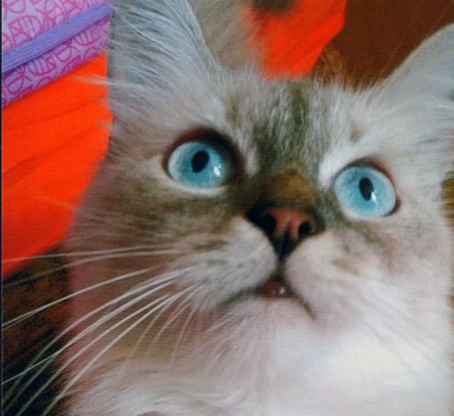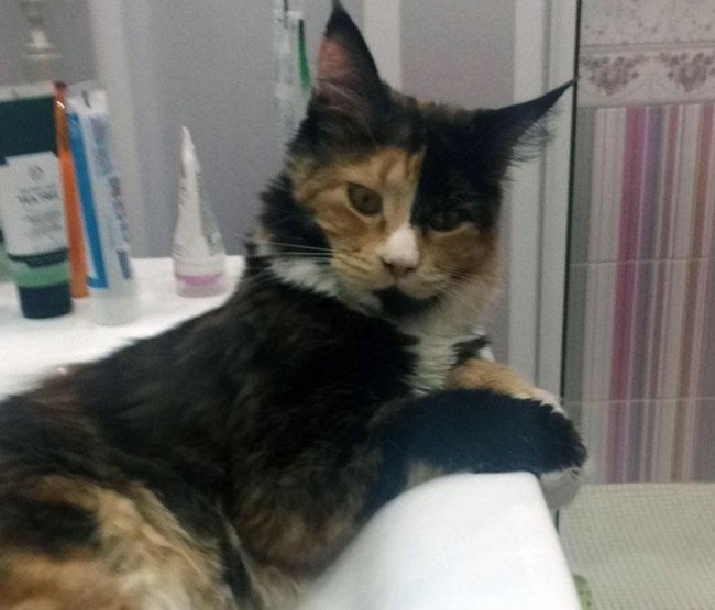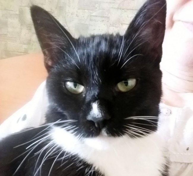 Мура одноглазая. Подобрали на улице маленького больного котёнка. Выросла красивая кошка с независимым характером, ей 7 лет. Очень привязана к хозяйке.