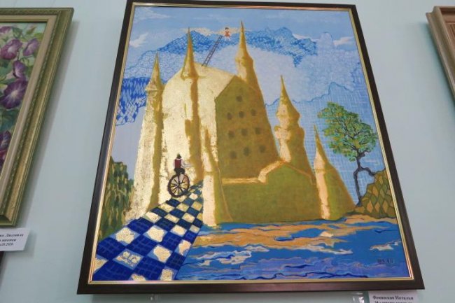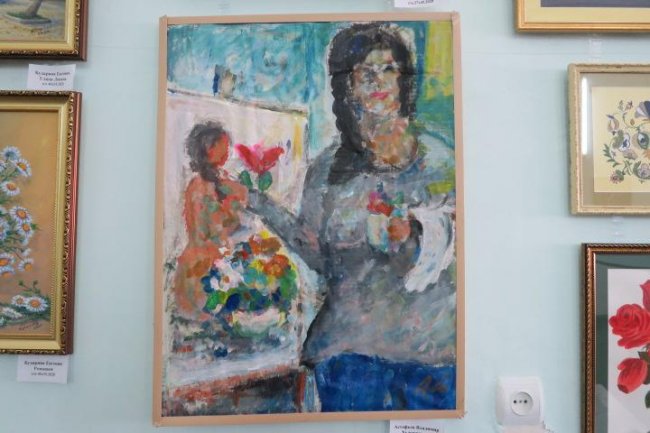 Владимир Астафьев тоже ветеран художественного фронта, ему 87 лет. Портрет коллеги из союза художников «Кафа» Татьяны Петровой, названный Владимиром Ивановичем «Художница у мольберта» - самое яркое «пятно» экспозиции.