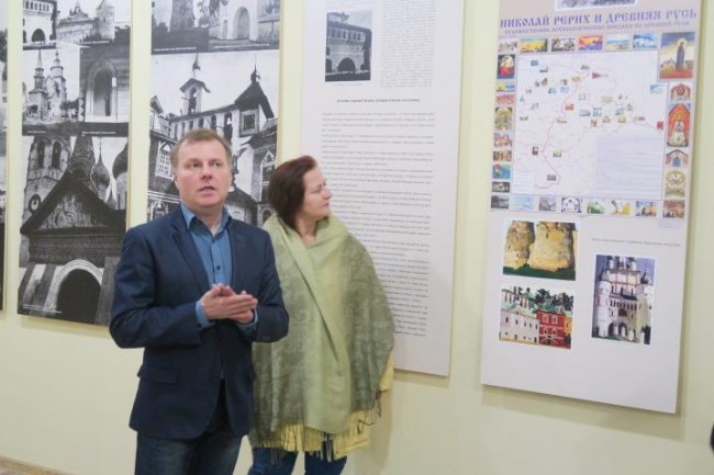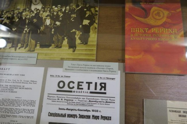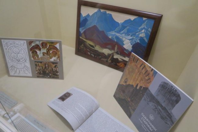 Об этом же свидетельствуют и множественные экспонаты рериховской выставки, насыщенной информацией из фонда Музея-института семьи Рерихов. Все они посвящены творчеству Николая Рериха на путях исследования культур разных эпох и народов, а также его общественной деятельности в России и Европе, Америке, Индии, Центральной Азии. Существенно дополняют и украшают выставку копии живописных работ Рериха, открытки и пресса первой половины ХХ века, редкие издания, посвященные миротворческой и культуроохранной деятельности Николая Рериха.