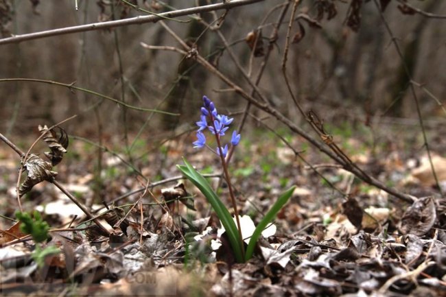 Дорогу до Краснокаменки отремонтировали, и ехать теперь по ней одно удовольствие. Знакомой тропинкой поднимемся к Святосурожскому монастырю и, пройдя его территорию, зайдем в лес, в урочище Хаджи-палом. Листья на деревьях еще не распустились, но почки уже набухли, а на некоторых кустарниках уже появились маленькие листочки. Под ногами тут и там мелькают синие пролески и сиренево-розовые хохлатки. Кое-где, на самых солнечных местах, распустились лимонно-желтые примулы. По лесной дороге доходим до речки Мезарлык-Узень, и тут нас ждет небольшое разочарование. Обычно в это время года здесь несется шумный поток воды, бурля между камнями, стремительно спускаясь вниз большими и маленькими водопадами. Сейчас, из-за продолжительной засухи, в русле лишь слабенький ручей. Но все-таки вода есть, и животные могут напиться.