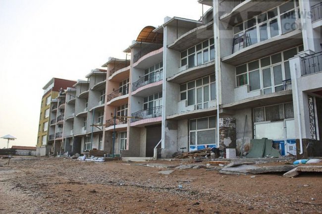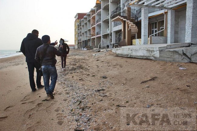 Следующий объект, вызывающий законное возмущение феодосийцев – так называемый многоэтажный «спасательный пост» на песке - у пирса в центрально части Золотого пляжа. Крымский общественник Александр Талипов провел экскурсию по этому сооружению. Уже видны следы серьезных разрушений здания, но баннеры о продаже различных объектов этого комплекса не сняты. В интернете можно найти объявления о продаже недвижимости по адресу Керченское шоссе 76А.