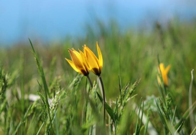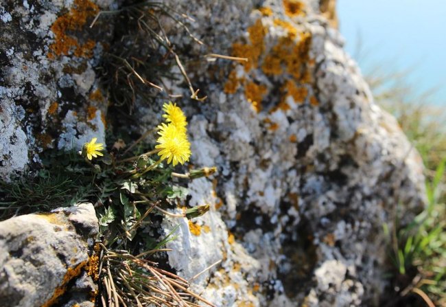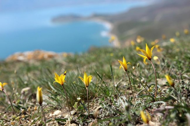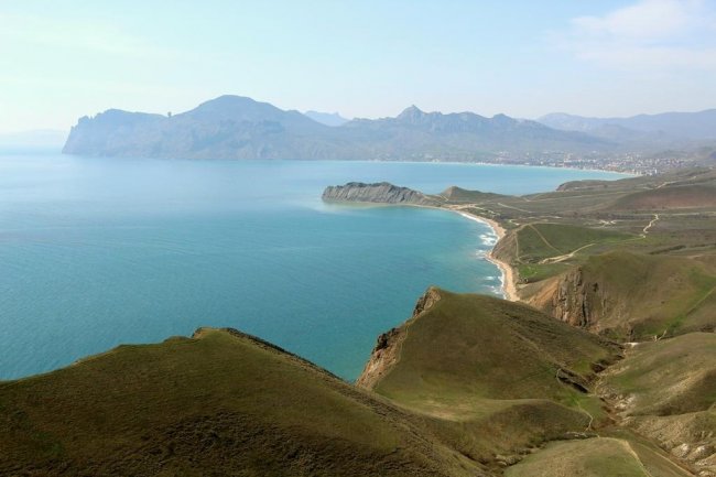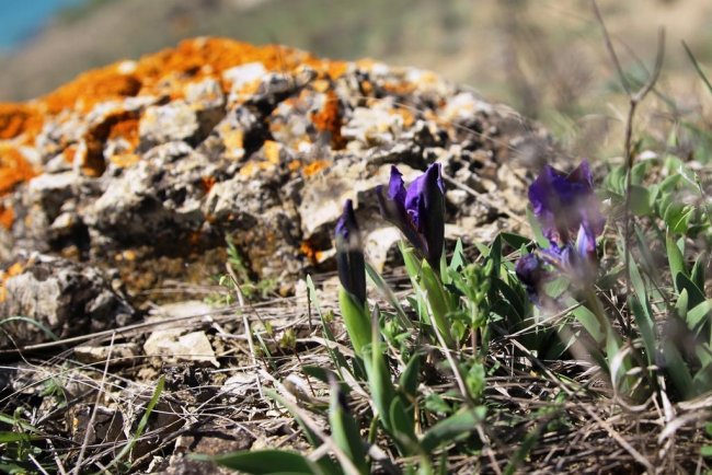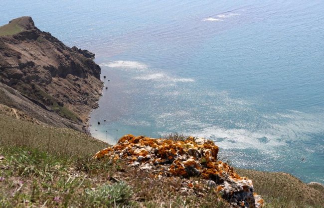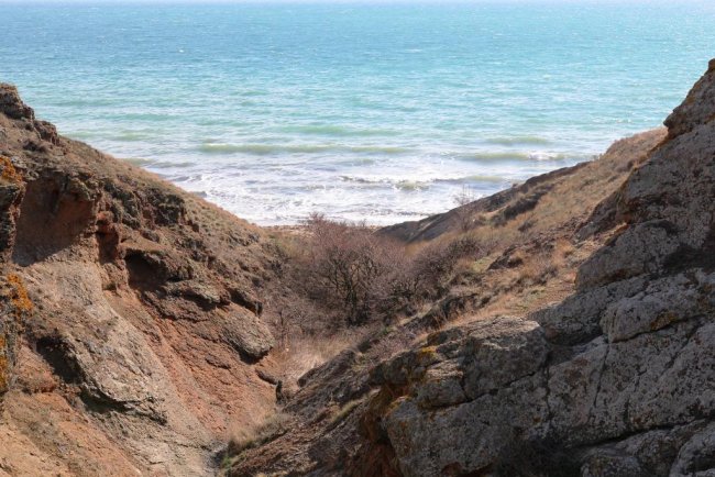 За монастырем дорога плавно начинает подниматься в гору через сосновые посадки. Летом 2019 года здесь случился сильный пожар, и часть леса сгорела. Подъем легкий и недолгий. Последние несколько десятков метров, и дух захватывает от открывшегося вида на окрестные горы, бухту Провато и огромное бескрайнее море. Слева мыс Киик-Атлама и поселок Орджоникидзе, справа из-за прибрежных мысов выглядывает Карадаг, а над нами, на западе вершина хребта Биюк-Янышар - Джан-Кутаран. В марте и начале апреля хребет покрыт маленькими разноцветными карликовыми ирисами и тюльпанами Биберштейна. Любуясь красотой растений и окрестными видами, поднимаемся на вершину хребта. Вид с вершины «на четыре стороны света» - весь Восточный Крым перед глазами. Надолго задержаться на этом месте не получится, тут всегда дует сильный ветер. Потихоньку спускаемся на запад, в сторону Тихой бухты. Спуск достаточно крут, но недолог. По тропинке выходим на песчаный пляж Тихой бухты. В начале весны тут безлюдно, но солнце припекает и, если хватает смелости, можно окунуться в бодрящую холодную воду. Вся усталость пути тут же отступит, а тело наполниться звонкой легкостью.