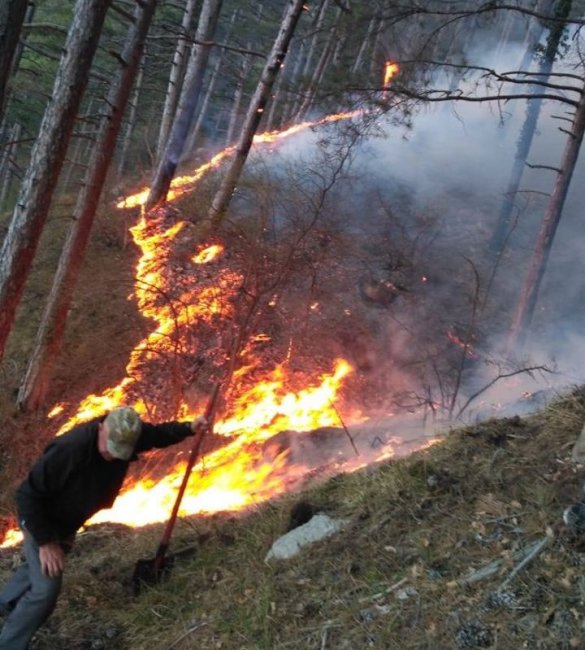 «Площадь возгорания небольшая – где-то 0,6 га. Но территория труднодоступная. Подъехать машинами туда нельзя, поэтому воду туда носят ведрами, ранцами и чем угодно», – рассказал он.