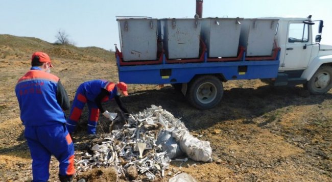 Фото пресс-службы Госкомветеринарии РК В Сакском районе обнаружили скопление биологических отходов, сообщает пресс-служба Госкомветеринарии Крыма. «В Государственный комитет ветеринарии Республики Крым по информации из социальной сети обратилась общественная организация, в связи с обнаружением заброшенном карьере биологических отходов (трупы крупного рогатого скота) близ села Ветровка Сакского района», - говорится в сообщении. Звеном ветеринарной разведки Сакского ветеринарного лечебно-профилактического центра была подтверждена данная информация. Для ликвидации свалки биологических отходов задействованы силы и средства государственной ветеринарной службы, а также представителей администрации Сизовского сельского поселения. Все отходы, общим весом 365 кг, собраны и уничтожены, проведена дезинфекция мест обнаружения.