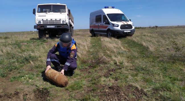 Фото пресс-службы МЧС РК Крымские спасатели уничтожили взрывоопасные предметы времен Великой Отечественной войны в Ленинском районе, сообщает пресс-служба МЧС РК. Взрывоопасные предметы были извлечены, транспортированы и уничтожены на специальном полигоне. Так, по информации МЧС, в Ленинском районе были обезврежены взрывоопасные предметы времен Великой Отечественной войны: 4 осколочные авиационные бомбы весом 10 кг (АО-10), 1 фугасная авиационная бомба весом 50 кг (ФАБ-50), 1 осколочная авиационная бомба весом 2,5 кг (АО-2,5). Операцию по идентификации и обезвреживанию опасной находки осуществляли специалисты отделения пиротехнических работ Специального морского отряда Главного управления МЧС России по Республике Крым. «Взрывоопасные предметы были извлечены, транспортированы и уничтожены на специальном полигоне. «Идентификация и обезвреживание проведены с соблюдением всех необходимых мер безопасности» - сообщил министр чрезвычайных ситуаций Республики Крым Сергей Шахов.