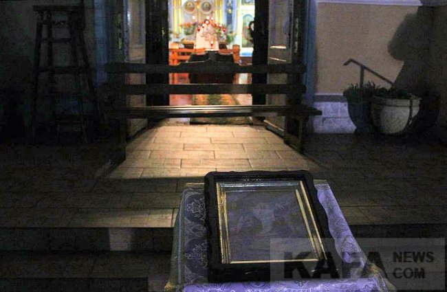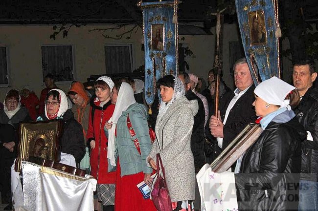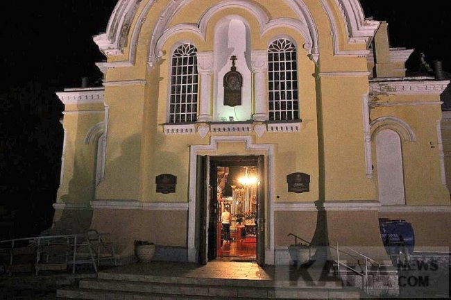 Ночное праздничное богослужение началось в 23:30. Сам храм стал как бы алтарем, перед ступенями – праздничная икона. Всем пришедшим хватило места в просторном дворе Казанского. Снаружи храма установлены колонки, и всем во дворе было хорошо слышно и слова священников, и хор, а замечательному голосу дьякона Николая в усилении вообще не было необходимости.