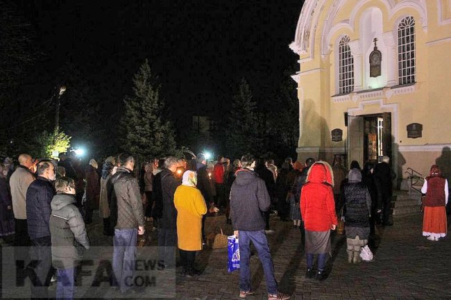 Накануне священники предупреждали, что ночью не будет освящения куличей и пасок. В Феодосийском Казанском соборе территория двора тщательно размечена с соблюдением дистанции. Начиная с 10.30 Великой Субботы – освящение пасхальных угощений. Пришло человек 10–20 – сразу же освятили, люди ушли. Подходят следующие. Противопандемические мероприятия выполняются: повязки, дистанция, минимум контактов. Шли весь день, и даже в 10 вечера подходили запоздавшие феодосийцы.