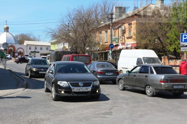 Пробка начинается на улице Вити Коробкова и тянется по улице Назукина вдоль "Крымтелекома", магазина «Новый свет» и центрального рынка, до магазина «Пуд» у центральной остановки. Довольно плотное движение на улице Нахимова около рынка и на Советской до перекрестка с Украинской. Ремонтные работы на улице Куйбышева еще не закончены, водителям придется некоторое время потерпеть неудобства.