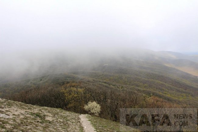 Сегодня отправимся на прогулку по круговому маршруту от Краснокаменки, через Святосурожский монастырь, вдоль оврага Кызылташ-Дере, поднимемся на вершину Сандык-кая и Сачарикон-кая, прогуляемся по горному массиву Горданлы, пику Беширова («Космосу») и спустимся обратно в поселок. Вера Полякова Сон-трава в тумане Тропа к монастырю Сиреневые цветы зубатки Ятрышник В лесу монастырские ворота Весенний лес Страж на тропе Дорога в облаке Вид на восток Вершина Сандык-кая Каменный лоб Наш путь начинается в поселке Краснокаменка, откуда по указателям «монастырь» отправляемся горной тропой к Свято-Стефано-Сурожскому монастырю. Под деревьями можжевельника и дуба раскинулись легкие сиреневые ковры зубянки. Середина весны - время цветения орхидей: то здесь, то там выглядывают соцветия ятрышника. По тропе доходим до деревянной церкви на территории монастыря, но вместо привычного маршрута в урочище Хаджи-палом, повернем направо по грунтовой дороге, уходящей вверх и на восток. Дорога идет по левому борту оврага Кызылташ-дере. Вероятно, раньше она была проезжей и связывала монастырь с Отузами (Щебетовкой), но сейчас поперек дороги поставили большие железные ворота, и она понемногу зарастает и превращается в пешеходную тропу. Путь приятный, без тяжелых подъемов. Лес еще полупрозрачен, листья только-только начали распускаться. Через некоторое время дорога приводит к развилке: налево - путь к хребту Туар-алан, вниз – к Водяной балке и Щебетовке, а вправо идет тропинка на гору Сандык-кая. По ней и отправимся. Перед подъемом можно передохнуть на поляне, с которой открывается великолепный вид на восток, перед нашими глазами вся горная Киммерия. Полюбовавшись видами, начинаем подъем на самую высокую гору в окрестностях, ее высота 698 метров над уровнем моря. С тюркского Сандык-кая переводится, как «сундук-гора», другое ее название – Каменный лоб, и она, действительно, на него похожа. Подъем легкий и не составит труда. На вершине открывается фантастическая круговая панорама всего Юго-восточного Крыма. На востоке видны Феодосия и залив, гора Клементьева, Коктебель, Карадаг во всей его красе и Отузская долина. Прямо перед нами открывается вид на горный хребет Эчки-даг. На запад, в сторону Караби уходят ряды горных хребтов, а за нашей спиной возвышается величественный Туар-алан и главная гряда Крымских гор. С Сандык-кая спускемся на узкий горный хребет, который как мостик, соединяет вершину с соседней горой Сачарикон-кая («Очищающая от грехов»). Поляны на пути покрыты свечами белой и желтой асфоделины. Еще встречаются пушистые сиреневые цветы сон-травы, а рядом с ними уже зацветают желтые и алые миниатюрные тюльпаны Шренка. Через небольшой лесок переходим на живописный горный массив Горданлы ( с тюркского - «складки под подбородком»). На Горданлы много можжевельника, и воздух наполнен запахом можжевеловой хвои. Здесь нужно быть осторожнее, горная тропа идет по узкому хребту, поднимаясь то вверх, то вниз до самой южной части – пика Беширова. С высоты видно, какое маленькое пространство заселено людьми. Небольшие поселки среди огромных лесных, горных массивов и долин. С Горданлы домики Краснокаменки и Святосурожский монастырь кажутся игрушечными, а все жизненные трудности и проблемы – незначительными. Горы возвращают душевное равновесие, целостность и 