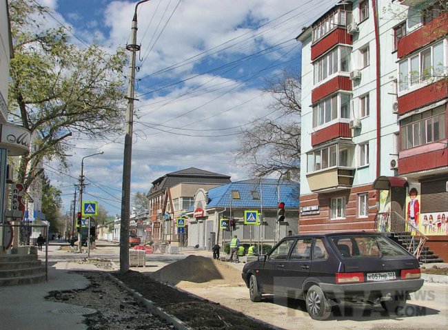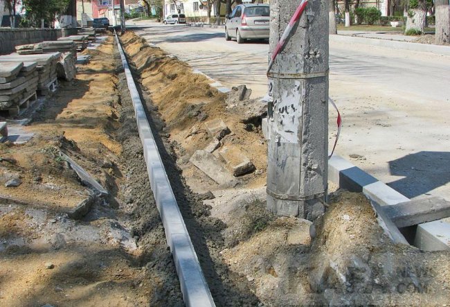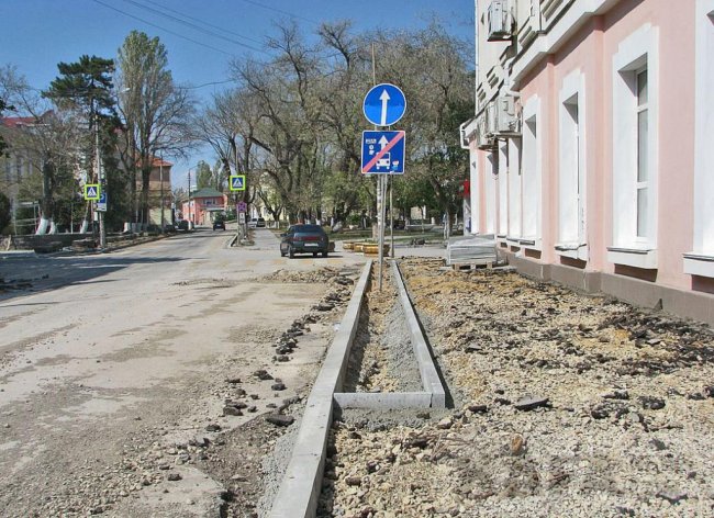 Вдоль дороги, с обеих сторон, появились выделенные бордюрами клумбы. При этом они не глубокие, бетон и щебень образуют дно. Сверху засыпают почву. Предполагается высадка «живой изгороди» из кустарника. Если это будет бирючина (кустарник, напоминающий сирень с мелкой, густой листвой и небольшими белыми пирамидками соцветий – прим.), то она действительно образует живую изгородь, защищающую тротуар от пыли с дороги и препятствующую переходу через дорогу в неустановленных для этого местах. Остатки такой живой изгороди еще можно увидеть на улице Советской и в начале улицы Куйбышева, возле «Чистого дома». Но Советская улица более широкая, на ее тротуарах нет такого потока пешеходов, как на Куйбышева. Поэтому газоны вдоль этой улицы значительно сузили и так неширокие тротуары. Мелкая плитка, укладываемая на тротуарах, вместо гладкого асфальта, также обрадовала не всех горожан. Асфальт может держаться несколько лет, а уложенная плитка вскорости может начать «танцевать», ударяя после дождя фонтанчиками грязной воды, как из-под плитки у Центрального гастронома.