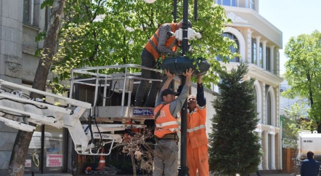 ✔ На улицах Симферополя устанавливают вазоны ампельного озеленения - «Новости Крыма»
