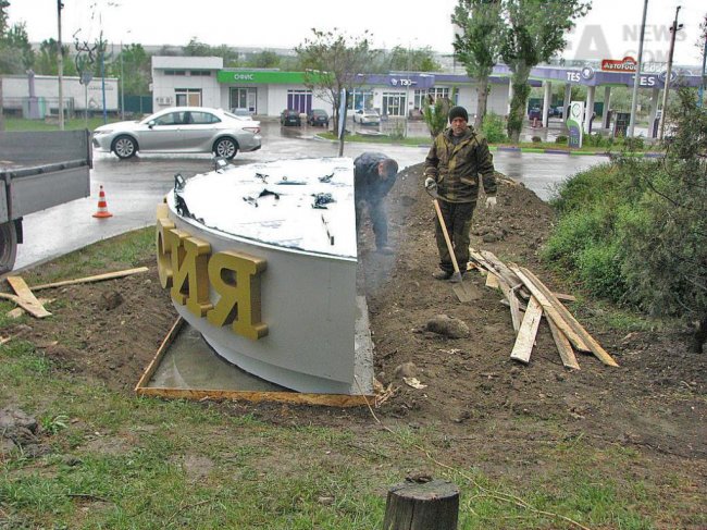 ✔ На въезде в Феодосию монтируют памятный знак (фоторепортаж) - «Феодосия»