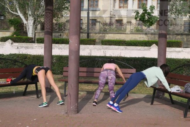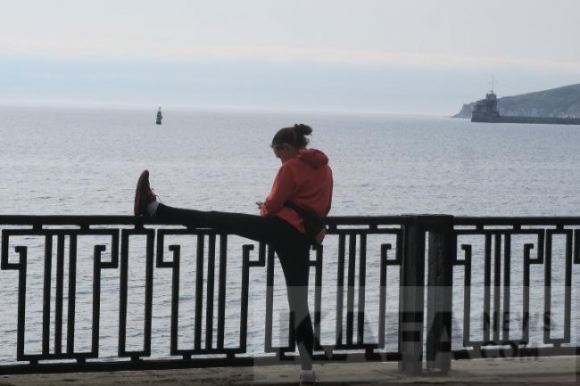 Феодосийское утро последней декады мая выдалось пасмурным. На открытой после антивирусного запрета посещения набережной между тем не очень-то и многолюдно. В основном здесь сторонники здорового образа жизни. Они совершают пробежки, пешеходные и вело-прогулки, делают утреннюю гимнастику и просто дышат свежим морским воздухом.
