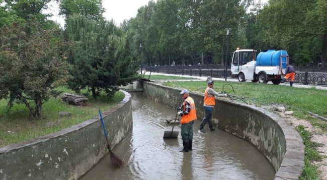 Фото пресс-службы администрации Симферополя Работники муниципального бюджетного учреждения «Город» ведут работы по очистке искусственных прудов в Екатерининском саду крымский столицы. Об этом сообщил директор МБУ «Город» Виталий Стешенко. «Работники городского хозяйства слили воду из чаш прудов, очищают их от накопившегося мусора, ила и водорослей. С помощью спецмашины данная поверхность промывается и затем будет заполнена чистой водой. Очистку и вывоз собранного мусора планируем завершить уже сегодня»,- отметил он. По его информации, в работах по очистке бассейнов задействовано 3 сотрудника и 3 единицы специализированной техники МБУ «Город». Кроме того, он добавил, что по окончанию очистительных работ будет произведена посадка кувшинок в прудах.