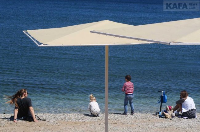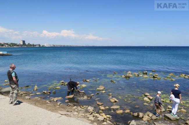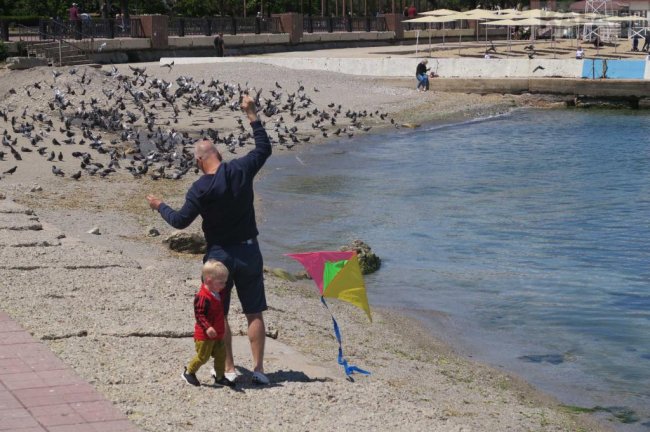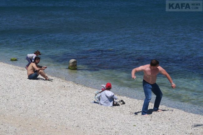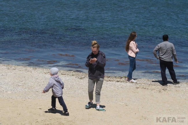 А воскресные прогулки по набережной – это вообще одно из любимейших занятий горожан. Поэтому сегодня пешеходов здесь особенно много. Ну а пляжи пока практически безлюдны. Только лишь единичные загорающие, купающихся же в море застать на месте не удалось. Температура воды пока всего 15 градусов. «Моржи», как правило, предпочитают делать водные процедуры с раннего утра. Однако около воды немало маленьких феодосийцев, их сюда привели папы и мамы, бабушки и дедушки. И детвора с удовольствием находит тут себе развлечения. Впрочем, как и взрослые.