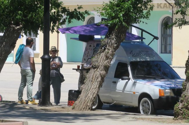 В воскресенье, 31 мая в Феодосии в популярных местах уличного отдыха было уже достаточно людно. Работают многие торговые точки, а готовую еду продают только на вынос. Некоторые сезонные услуги также стали доступны. Константин Лепер Экскурсионные электромобили открыли свой сезон Летнее кафе наводит чистоту Уличная торговля как будто бы и не прекращалась Кофемобиль в действии