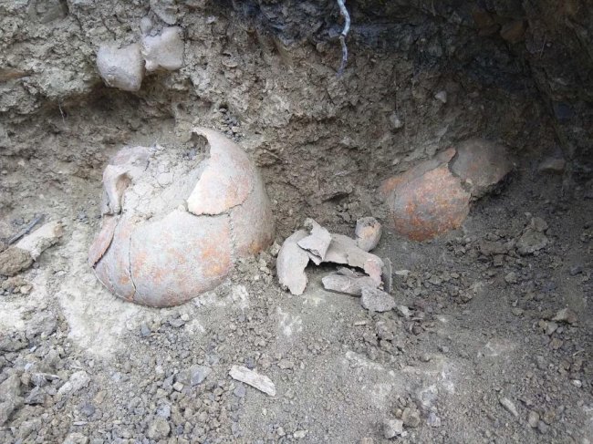 В конце мая 2019 года жители Феодосии случайно обнаружили на горе Митридат массовое человеческое захоронение. Очевидцем находки оказался, в том числе, феодосиец Вячеслав Марков, который решил заняться судьбой этого захоронения. Вера Полякова Автор фото В.Марков Автор фото В.Марков Автор фото В.Марков Автор фото В.Марков Автор фото В.Марков Автор фото В.Марков Автор фото В.Марков Автор фото В.Марков Автор фото В.Марков Автор фото В.Марков Автор фото В.Марков Автор фото В.Марков После консервации После консервации После консервации После консервации После консервации После консервации Место захоронения расположено непосредственно под стеной жилого дома на улице Гоголя, часть его находится под проезжей частью улицы. Первыми обнаружили останки хозяева дома, которые решили на месте небольшого холмика у забора оборудовать стоянку для своего автомобиля. Снимая часть грунта для расчистки площадки, они обнаружили человеческие кости и, никому не сообщив о страшной находке, просто прекратили работы в этом месте. Позже остатки костей в грунте у дома и на дороге увидел Вячеслав Марков. Вячеслав обратился за помощью к феодосийскому военно-поисковому отряду «Ак-Монай». Также он сообщил о находке в полицию и Следственный комитет, от которых узнал, что подобные захоронения не входят в их компетенцию. По словам представителей Следственного комитета, такими вопросами должны заниматься городская администрация и комитет по культурному наследию. По поверхностному обследованию места захоронения и шурфовке, сделанной поисковиками, обнаружены множественные человеческие останки, в том числе женские и детские, расположенные хаотично друг на друге. Также найдено небольшое количество предметов быта и одежды: маленькая пуговичка, выполненная из перламутровой ракушки, кусок лезвия ножа и остатки кожаной подошвы с каблуком, с сохранившимися деревянными гвоздями. Кроме этих находок, по словам Вячеслава Маркова, в захоронении практически отсутствуют остатки одежды. Также в захоронении обнаружены остатки извести и металлический обод от бочки. Известь применялась для обеззараживания мест массовых захоронений. Вывод поисковиков: «Срок захоронения останков свыше 38 лет. Они могут принадлежать, как периоду Гражданской войны, так и периоду Великой Отечественной войны» Поисковики «Ак-Монай» обратились в администрацию Феодосии за разрешением на эксгумацию останков. Из администрации был получен ответ, что раскопки на этом месте имеет право проводить только