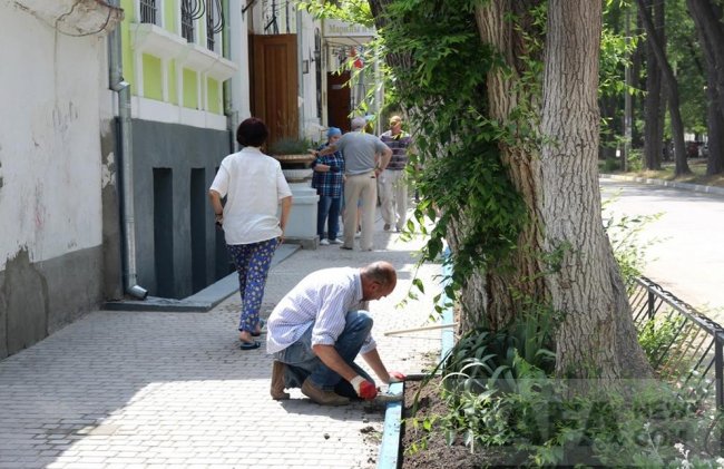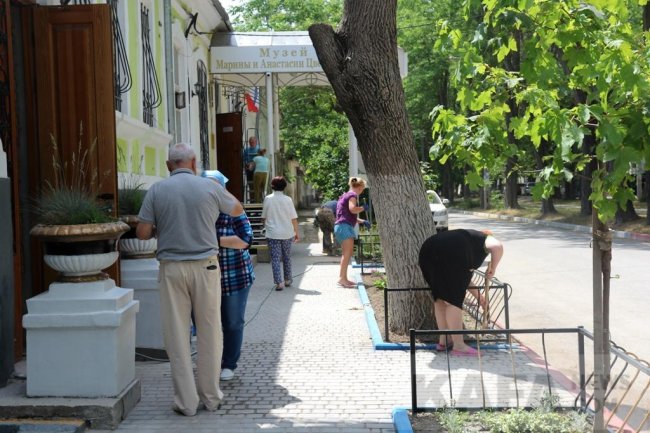 Несмотря на изнуряющую жару, большинство сотрудников музея бодро выполняли свою работу: мужчины чистили бордюры и занимались более тяжелой физической работой, дамы ухаживали за клумбами и мели тротуары около музея. Помочь коллегам приехали сотрудники Дома-музея М.Волошина. Недавно у здания музея отремонтировали тротуар, заменив старое асфальтовое покрытие тротуарной плиткой. После ремонта и субботника территория, по которой летом проходит множество гостей города, будет достойно выглядеть.
