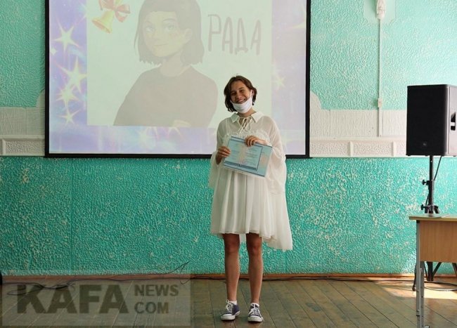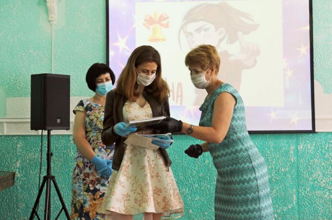 В школе №1 им. Д.Карбышева постарались сделать вручение аттестатов праздничным, насколько это возможно с учетом всех необходимых ограничений. Ребята заходили в школу по одному. В зале их встречали музыкой, стихотворением, сочиненным специально для каждого выпускника. Директор школы и классный руководитель вручали детям аттестаты, грамоты и фотоальбомы на память о последнем выпускном классе. На вручении присутствовал председатель правления Союза русских писателей Восточного Крыма Владимир Смирнов. Он вручил грамоты нескольким выпускникам школы, которые участвовали в литературных конкурсах. Также грамоты от Союза русских писателей получили преподаватель литературы и русского языка Светлана Литвинова и директор школы Галина Скорик.