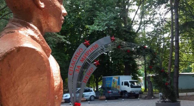 Новый арт-объект занял свое место в парке перед входом на аллею пионеров-героев, со стороны улицы Киевская. Металлическую конструкцию украшают цветы, гирлянда из еловых веток и праздничная надпись «Спасибо за мирное небо!». В вечернее время арка будет освещена подсветкой.