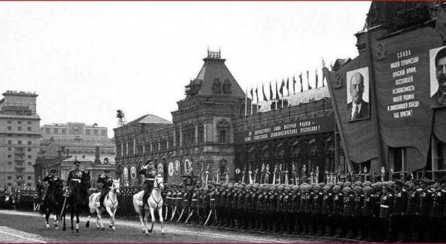 1945-го. Решение о проведении парада победителей Верховный Главнокомандующий Иосиф Сталин принял накануне - 15 мая: «Нужно провести особый парад. Пусть в нём будут участвовать представители всех фронтов и всех родов войск». 22 июня 1945-го, спустя ровно 4 года после начала Великой Отечественной, он подписал приказ о проведении Парада Победы.