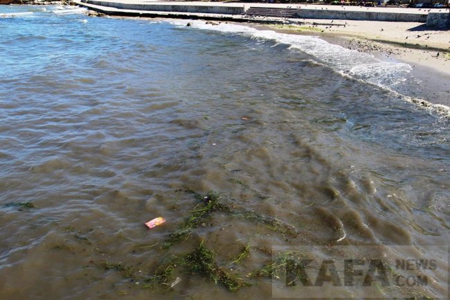 Море в центре Феодосии грязно-коричневого цвета