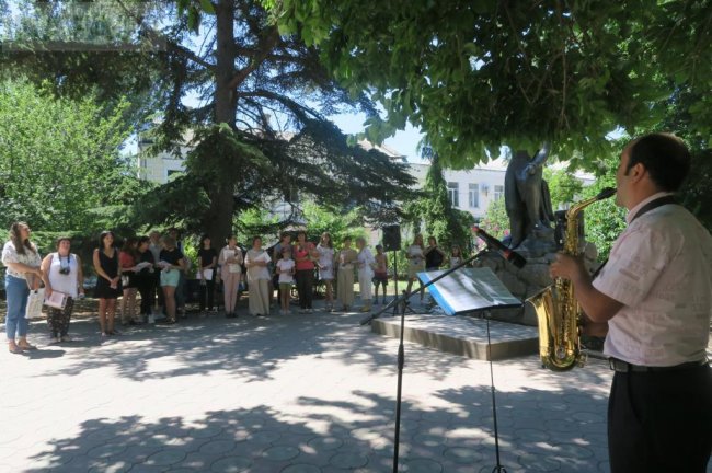 А праздник, посвященный Дню молодежи, начался с живой музыки от саксофониста, лауреата международных конкурсов Асана Халилова. Музыкальное оформление от виртуоза и любимца феодосийской публики сопровождало все праздничное мероприятие. Дополнило концертную составляющую программы еще и поэтическое выступление участницы «БиблиоТеатра» (центральная детская библиотека) Полины Коцегуб, руководитель Тамара Долгорукова. Сама же Тамара Евгеньевна выступила в роли ведущей праздника.