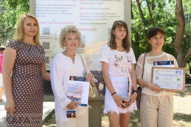 Маршруты «Врата учености для Богом Данной», «Феодосия – город 25 веков» и «С алмазным блеском капель сеть» разработаны школой № 15 в лице ее библиотекаря Елены Леонгард, преподавателя Ларисы Кривцовой и учащимися Ниной Курандой и Татьяной Копайничук.