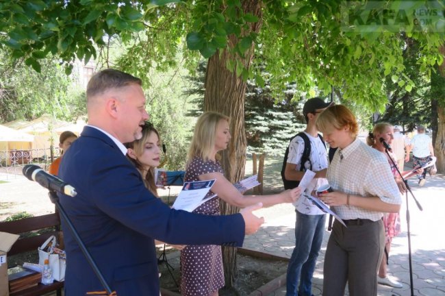 Поздравление от депутата Госсовета Крыма, презентация мобильных аудиогидов по феодосийским туристическим маршрутам, награждение «волонтеров культуры», немного живой музыки и стихов – такова была программа главного праздничного мероприятия нашего города. Константин Лепер В Феодосии отметили День молодежи (видео) В Феодосии отметили День молодежи (видео) В Феодосии отметили День молодежи (видео) В Феодосии отметили День молодежи (видео) В Феодосии отметили День молодежи (видео) В Феодосии отметили День молодежи (видео) В Феодосии отметили День молодежи (видео) В Феодосии отметили День молодежи (видео) В Феодосии отметили День молодежи (видео) В Феодосии отметили День молодежи (видео) В Феодосии отметили День молодежи (видео) В Феодосии отметили День молодежи (видео) В Феодосии отметили День молодежи (видео) В Феодосии отметили День молодежи (видео) В Феодосии отметили День молодежи (видео) В Феодосии отметили День молодежи (видео) В Феодосии отметили День молодежи (видео) В Феодосии отметили День молодежи (видео) В Феодосии отметили День молодежи (видео) В Феодосии отметили День молодежи (видео) В День молодежи, 27 июня в феодосийском пушкинском сквере состоялось праздничное мероприятие, основой которого стала презентация мобильных аудиогидов, появивашихся в рамках федеральной программы «Культура малой Родины». В нашем городе имя проекта - «Точка доступа – Феодосия». Это совместное детище местного отделения партии «Единая Россия» и центральной городской библиотеки имени Грина, носящее название «Философия города – историческое пространство. Точка доступа – библиотека». Старт этому начинанию, нацеленному на погружение в культурное наследие Феодосии – города 25 веков, был дан еще в конце прошлого года в библиотеки имени Грина. Результатом обобщения полученных знаний стало создание авторских туристических маршрутов по городским улицам. Инициатива библиотекарей нашла живой отклик среди феодосийцев, в том числе и у молодежи города. Было разработано 7 интересных маршрутов, авторами одного из них выступили сами сотрудники библиотеки. Организаторы проекта произвели звуковое оформление этих маршрутов и разместили их на международной туристической интернет-платформе izi.TRAVEL. За первые же две недели, согласно статистике сайта, с аудиогидами ознакомилось более двух с половиной сотен россиян и иностранцев. При поддержке партнеров проекта аудиогиды феодосийских маршрутов теперь размещены в свободном доступе на специальных рекламных панно – ситилайтах - на проспекте Айвазовского. Чтобы воспользоваться этими бесплатными «карманными историями» - аудиогидами, необходим лишь мобильный интернет. Выбрав маршрут, необходимо сканировать его QR-код и под увлекательный рассказ отправиться на прогулку по улицам нашего древнего города. А праздник, посвященный Дню молодежи, начался с живой музыки от саксофониста, лауреата международных конкурсов Асана Халилова. Музыкальное оформление от виртуоза и любимца феодосийской публики сопровождало все праздничное мероприятие. Дополнило концертную составляющую программы еще и поэтическое выступление участницы «БиблиоТеатра» (центральная детская библиотека) Полины Коцегуб, руководитель Тамара Долгорукова. Сама же Тамара Евгеньевна выступила в роли ведущей праздника. С приветственными сл