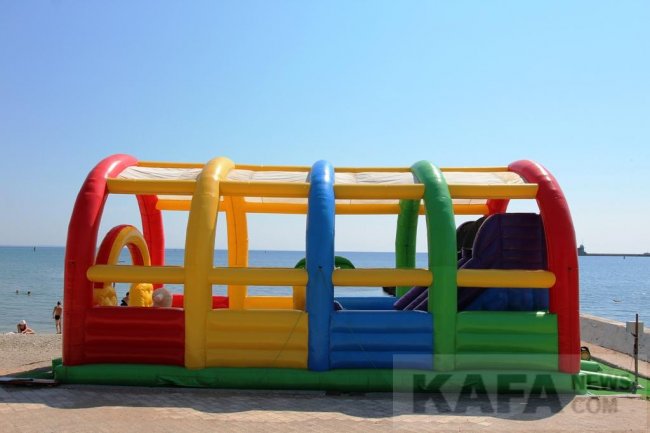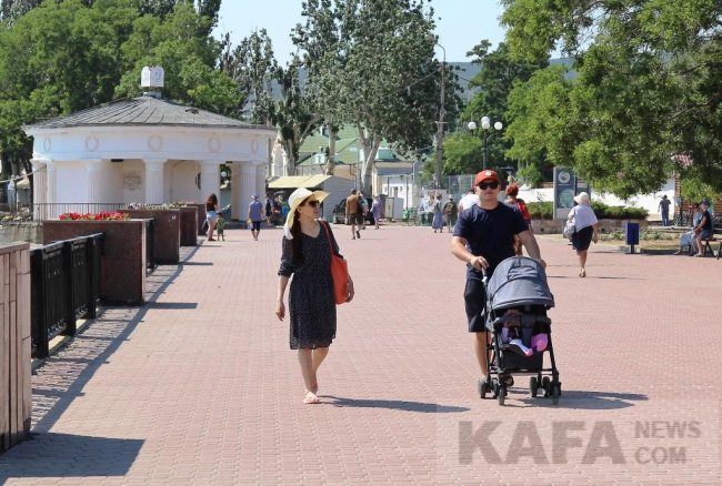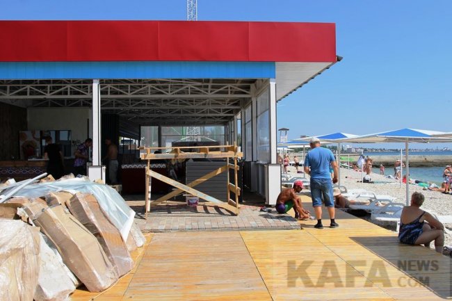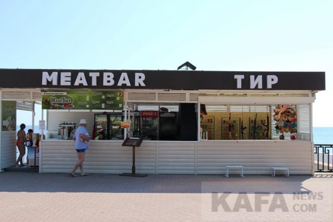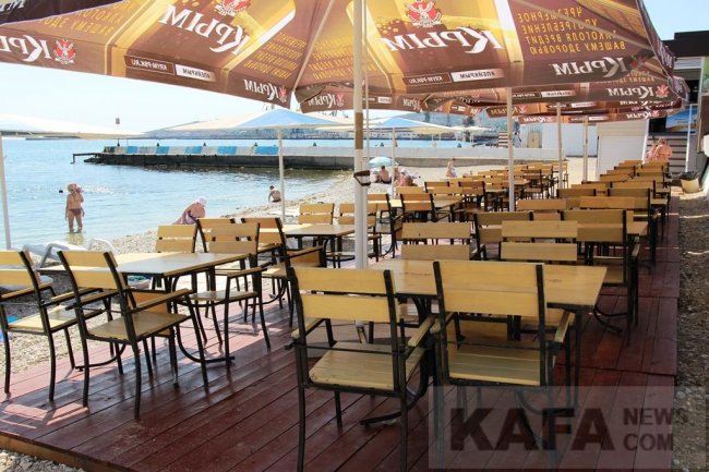 Привычно закрывают вид на море многочисленные ларьки с напитками, тирами, сувенирами и, так необходимые на пляже, вещевые НТО. Все больше кафе разметили свои столики и зонты прямо на берегу, сужая и без того не особенно широкие городские пляжи. Теперь, прогуливаясь вечером по набережной, феодосийцы и гости города могут дышать не только запахом дешевого пластика от навесов и зонтов, но и ароматами мангалов, шашлыка и пива. Аттракцион «Дом вверх дном», несмотря на обещания о сносе, по-прежнему на месте.