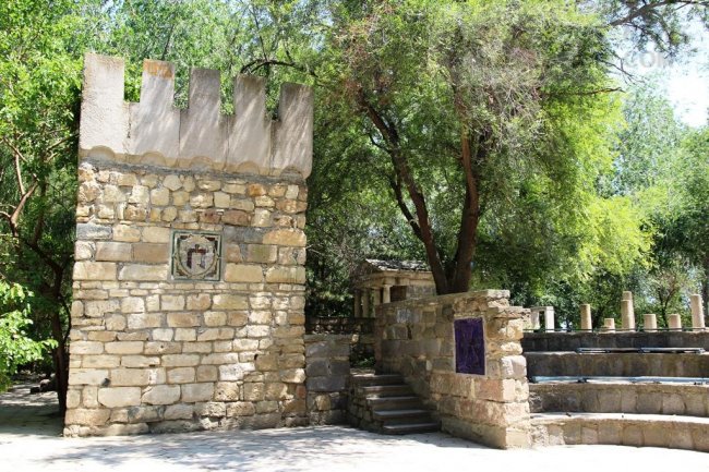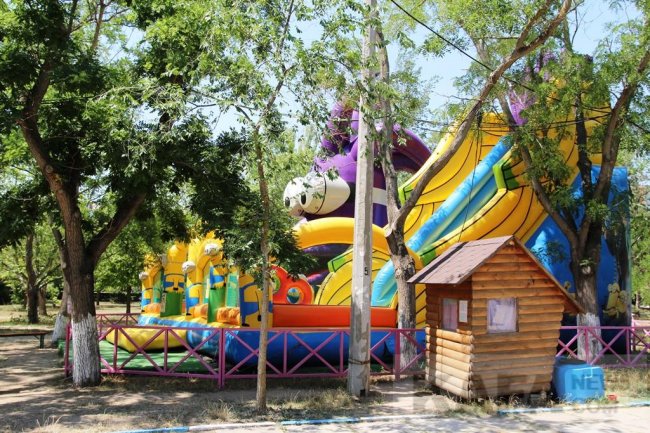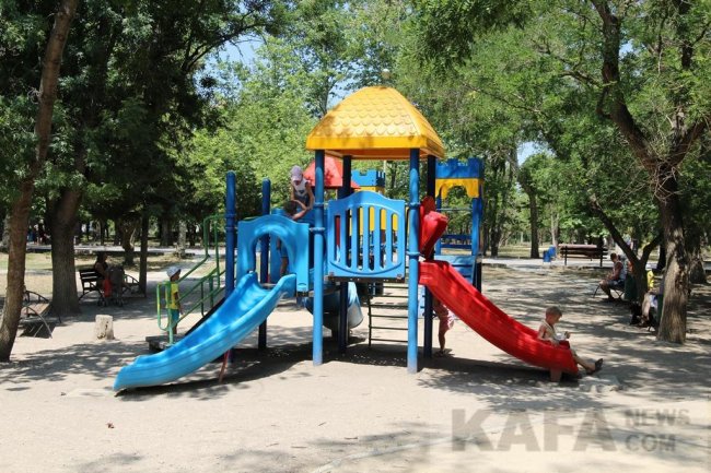 В 1980-х годах в парке построили детский городок, имитирующий античные развалины. С 90-х годов здесь была помойка и место сборища местных маргиналов и выпивох. Сейчас мусора почти нет, но стойкий запах общественного туалета не оставляет это место. Также в парке располагается несколько военных памятников. В 1970-х – 80-х годах здесь установили мемориальный комплекс со стелой в память об освобождении Феодосии от фашистов 13 апреля 1944 года. У центрального входа в парк установлена ротонда в честь 60-летия Победы над фашизмом. В 1991 году в парке состоялось открытие памятника феодосийцам, погибшим в Афганистане. Территорию вокруг памятника недавно благоустроили,и сейчас это единственный уголок парка, который выглядит более-менее прилично. Правда, недавно местные жители выкопали и украли одно из посаженных рядом с памятником деревьев туи. В остальном, парк выглядит заброшенным и больным. Дорожки из каменных плит разбиты и понемногу зарастают травой. С деревьев свисают поломанные сухие ветки, за ними никто не следит. Газона и другой растительности под деревьями нет, ее давно вытоптали аттракционщики и торговцы. По углам в парке и сейчас торгуют. У выхода со стороны спортивной базы «Динамо» разместилось НТО в виде уличной забегаловки. Дальняя часть парка, от стелы до развалин бывшего кафе «Киев» занята парком аттракционов. Многие аттракционы располагаются прямо на газоне. В районе детского парка стоит неприятный, удушающий запах дешевого пластика. Стоимость аттракционов в среднем 200 рублей. Желающих прокатиться не много. Ближе к центральному входу располагается детская пластиковая площадка. Недавно в соцсетиFacebookна «Городском портале Феодосии» сообщили о ремонте площадки. Но корреспондент следов ремонта не нашла. Краска облупилась, многие детали конструкции поломаны. Площадка расположена на голой земле, дети скатываются с горок на бетонные плитки. В дальнем углу возвышается недостроенное здание «общественного туалета – НТО». Стройнадзор Крыма в апреле 2020 года признал это строение незаконным. Стройка остановлена, но строение не демонтировали и оно продолжает портить облик парка.