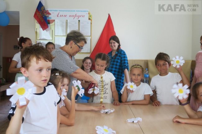 Начался праздник на территории девятнадцатой школы, где и базируется летний детский лагерь «Алые паруса». Первым праздничным мероприятием стал мастер-класс от Светланы Кряковой. Ребята под руководством феодосийской мастерицы изготовили красивые поделки цветка ромашки. Именно ромашка – символ Дня семьи, любви и верности. А сделанные своими руками цветочные символы использовались детьми в течение всего праздника.