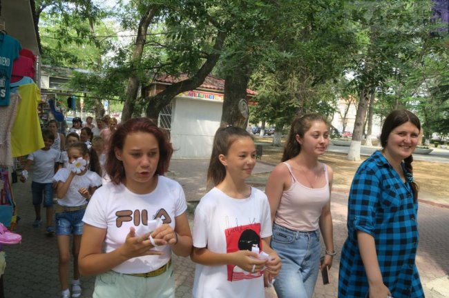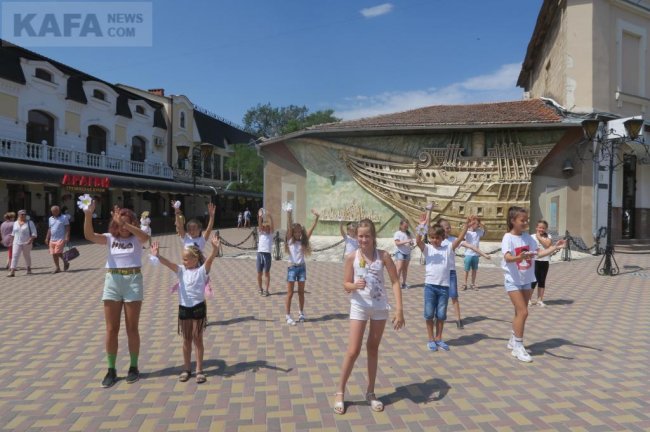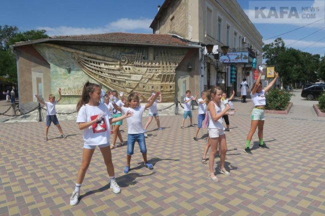 А какой же детский праздник обходится без песен и танцев? И они, конечно же, тут тоже были. Ведь далее «День семьи-2020» перебрался из школьных стен под открытое небо - на Музейную площадь. Здесь «Алые паруса» подарили феодосийцам и гостям нашего города танцевальный флэшмоб под задорную песню «Только вместе мы большая сила!». И прохожие, горожане и отдыхающие, замедляли шаг, а то и вовсе останавливались, хлопали в такт музыке и благодарили маленьких артистов за яркий танец-подарок.