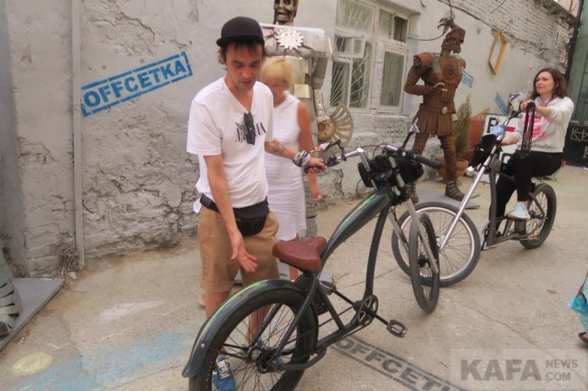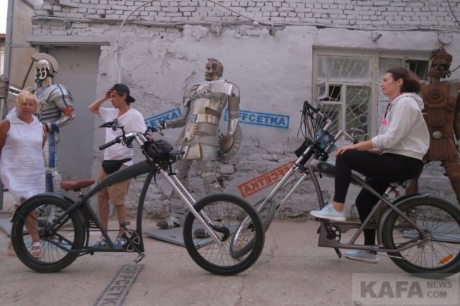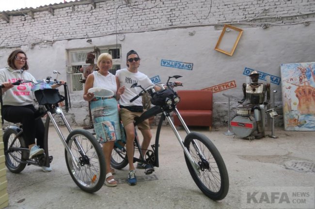 Как наши велогерои, которые представились Ринатом и Юлией, одолели своим ходом более полутора тысяч километров остается только догадываться. Но их визит в Феодосию отнюдь не был праздным. Москвичи провели творческую встречу, с теми, кто проявил интерес к необычным путешественникам, ну и, естественно к их эффектным «железным коням». Информация о встрече распространялась через соцсети.