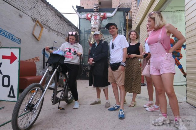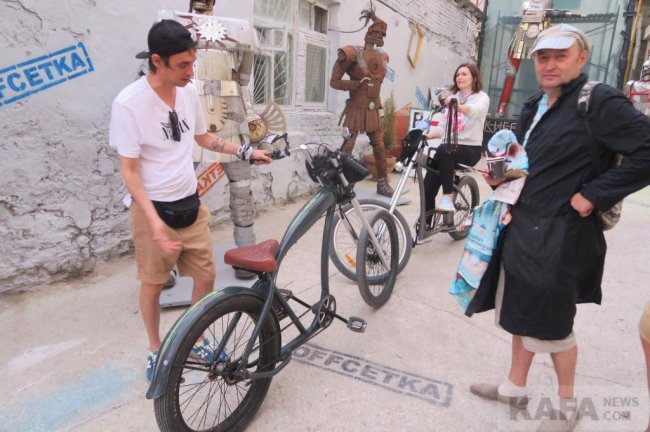 Встреча прошла на территории арт-галереи «Оffсетка». На склоне июльского дня Ринат прочитал небольшую лекцию о культовых велосипедах – чопперах, вместе с Юлией они также ответили на все интересующие вопросы здесь собравшихся. Ну а всем желающим была предоставлена уникальная возможность опробовать растабайки в деле – прокатиться по территории «офсетки».