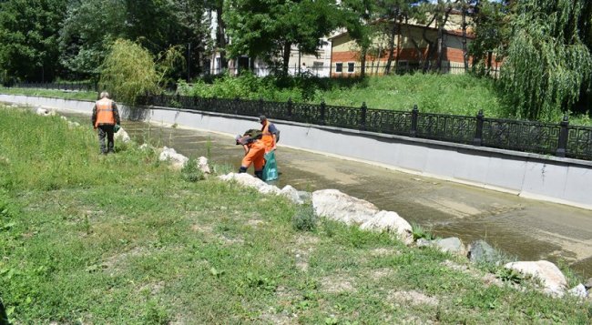 «После летних ливневых дождей, которые потоками воды смывают бытовой мусор в русло реки, рабочие бригады учреждения приступили к его очистке, - . Сотрудниками ежедневно вручную собирается не только мусор на воде, но производится также уборка прилегающих территорий и, при необходимости, покос травы вдоль Салгира. На данный момент расчистка территории началась от гостиницы «Москва» в направлении Парка культуры и отдыха им. Ю. Гагарина».