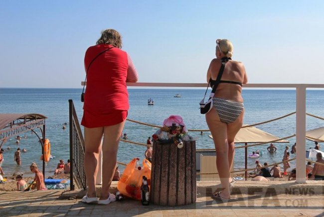 Все парковки и свободные уголки заняты машинами. Людей очень много. И много мусора. Коммунальные службы его убирают, но сил явно не хватает. На набережной стойкий запах гниющих отходов, жареной еды из многочисленных столовых и алкоголя из распивочных. На пляже практически нет свободных мест, купаются даже там, где это не очень удобно.