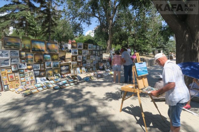 Особого разгула веселья в городе не наблюдается, но проходят два фестиваля художников и мастеров-рукодельников, в культурных заведениях города открылось с десяток новых выставок. А вечером пройдет театральное шоу от «Парадокса» и грянет праздничный салют. Константин Лепер Феодосия отмечает 2549-й День города (видео) Феодосия отмечает 2549-й День города (видео) Феодосия отмечает 2549-й День города (видео) Феодосия отмечает 2549-й День города (видео) Феодосия отмечает 2549-й День города (видео) Феодосия отмечает 2549-й День города (видео) Феодосия отмечает 2549-й День города (видео) Феодосия отмечает 2549-й День города (видео) Феодосия отмечает 2549-й День города (видео) Феодосия отмечает 2549-й День города (видео) Феодосия отмечает 2549-й День города (видео) Феодосия отмечает 2549-й День города (видео) Феодосия отмечает 2549-й День города (видео) Феодосия отмечает 2549-й День города (видео) Феодосия отмечает 2549-й День города (видео) Феодосия отмечает 2549-й День города (видео) Феодосия отмечает 2549-й День города (видео) Феодосия отмечает 2549-й День города (видео) В субботу, 25 июля Феодосия отмечает свой предъюбилейный, 2549-й День города. Конечно, из-за глобальной коронавирусной пандемии, былого праздничного веселья, присущего этому знаменательному дню, не наблюдается. Но все-таки для феодосийцев и гостей нашего города был приготовлен ряд торжественных, увлекательных и познавательных мероприятий. Коротко о наиболее значительных из них здесь и пойдет речь. Рядом с картинной галереей имени Айвазовского проходят сразу два фестиваля. Первый называется «Лето в городе», это фестиваль свободного творчества художников и творцов декоративно-прикладного искусства. Второй – фестиваль ремесленников «Ручная работа» с мастер-классами для детей и взрослых. Если быть откровенным, то оба эти мероприятия слились в одну большую ярмарку художников и мастеров-рукодельников. Причем, не малую долю среди которых заняли повседневные торговцы-завсегдатаи, продающие отдыхающим как свои собственные произведения, так работы других авторов. Тем не менее, праздничный фестиваль художников и народных умельцев привлек не малое количество праздной публики. Далее последует обзор культурных учреждений нашего город, подготовивших свои праздничные выставки. В картинную галерею выстроилась традиционная очередь, чтобы насладится искусством великого мариниста. К 203-му дню рождения Айвазовского и Дню его любимого города – Феодосии, сотрудники галереи подарили своим гостям еще и уникальную выставку графики Ивана Константиновича и старинных фотографий. Об этой выставке, как и тут же одновременно открывшейся к показу экспозиции живописи члена Союза художников России Анны Давыдченко, «Кафа» уже рассказывала своим читателям. Феодосийский Музей древностей к городскому празднику выдал три новых выставки. Две из них также художественные. «Южный ветер» - акварель и графика известного художника Сергея Матюшкина. И юбилейная персональная выставка работ метра феодосийского изобразительного искусства Александра Худченко. Нынче Александр Николаевич отметит свое 75-летие. Третья выставка называется «Ценности Боспора», также приуроченная ко Дню города, эта экспозиция открылась еще и в рамках празднования 2500-летия Боспорского царства. Музей является участником общероссийского проекта «Золотое кольцо Б