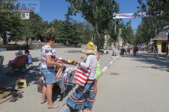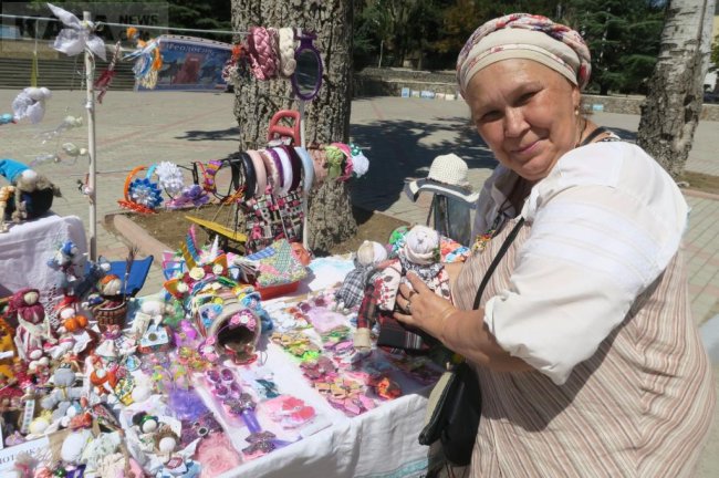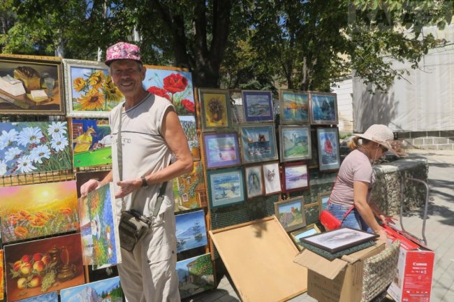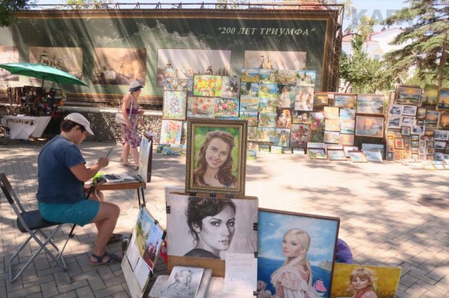 Рядом с картинной галереей имени Айвазовского проходят сразу два фестиваля. Первый называется «Лето в городе», это фестиваль свободного творчества художников и творцов декоративно-прикладного искусства. Второй – фестиваль ремесленников «Ручная работа» с мастер-классами для детей и взрослых. Если быть откровенным, то оба эти мероприятия слились в одну большую ярмарку художников и мастеров-рукодельников. Причем, не малую долю среди которых заняли повседневные торговцы-завсегдатаи, продающие отдыхающим как свои собственные произведения, так работы других авторов. Тем не менее, праздничный фестиваль художников и народных умельцев привлек не малое количество праздной публики.