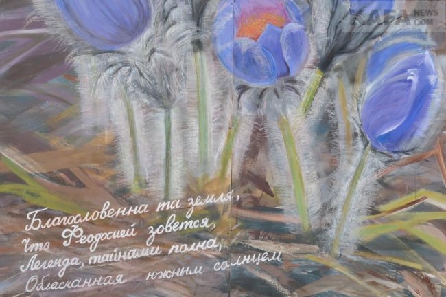А специально к 2549-летию Феодосии городской ДК в лице студии изобразительного и декоративно-прикладного искусства «Индиго» и ее руководителя Елены Черухи сделали выставку одной картины. На площадке перед Домом Культуры красуется масштабное полотно с цветочным натюрмортом, посвященное празднику любимого города. Слова, выведенные на картине, говорят не менее красноречиво: