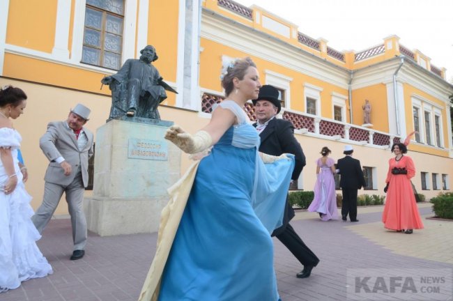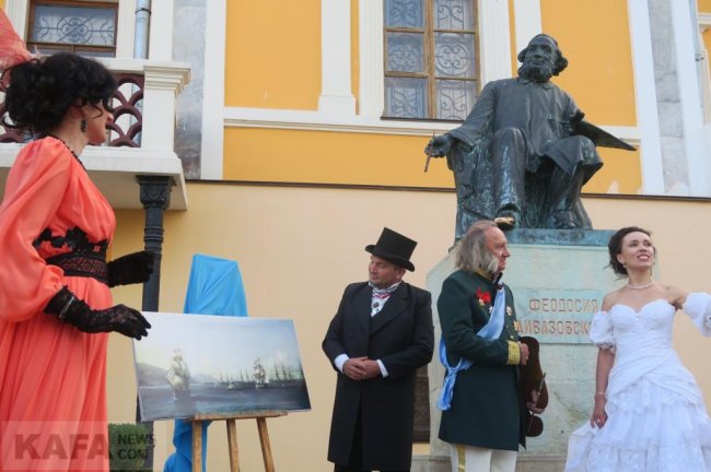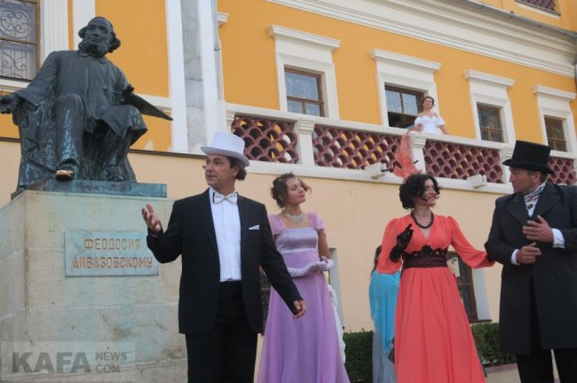 Вечером в День города на улицах заметно увеличилось количество празднующих сию знаменательную дату – 2549 лет. Эпицентром праздника и, пожалуй, самым ярким событием нынешнего Дня города стало театральное представление «Айвазовский – певец моря» в исполнении артистов прославленного коллектива «Парадокс».