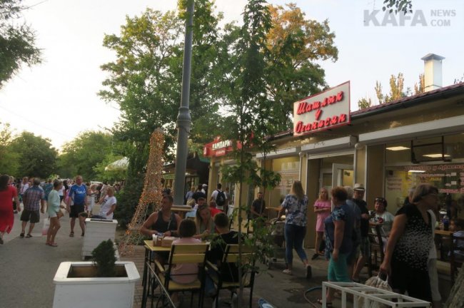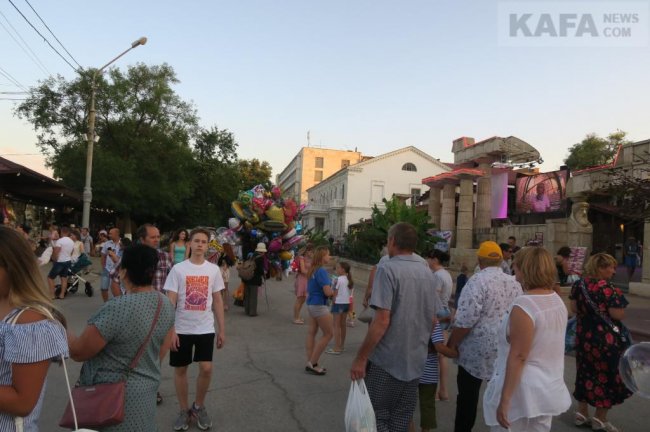 Далее празднующая толпа отправилась по традиционным феодосийским местам отдыха: кафе, ресторанам, летним верандам, паркам, скверам, на набережную, улицы и площади города. Выглядело все практически как в обычный вечер пика курортного сезона, разве что, чуть более масштабно по количеству гуляющих людей. И не случайно, ведь горожане и отдыхающие ждали в назначенный час праздничного салюта.