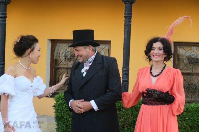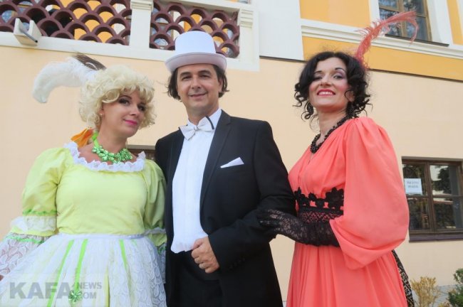 И посмотреть тут было на что. Изначально импровизированный спектакль-фантазия, представляющий собой сценки из жизни Ивана Константиновича, естественно, дополненный танцами, песнями и стихами, нынче засиял во всей своей красе. Сыгран он был на одном дыхании, игра актеров стала уже по-настоящему отточенной. Многочисленная публика заслужено купала артистов в аплодисментах. А по окончанию представления некоторым счастливчиком удалось сфотографироваться с самим Иваном Константиновичем Айвазовским (актер Валерий Лисин), его женой Анной Никитичной (Наталья Петрова) и другими актерами театра «Парадокс», задействованными в этой постановке.