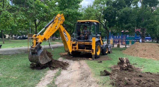 «На данный момент выполняется планировка территории площадки, подрядная организация уже завезла бордюрный камень, который в ближайшее время будет установлен. Затем начнутся работы по укладке травмобезопасного полимерного покрытия из резиновой плитки», - рассказал он.
